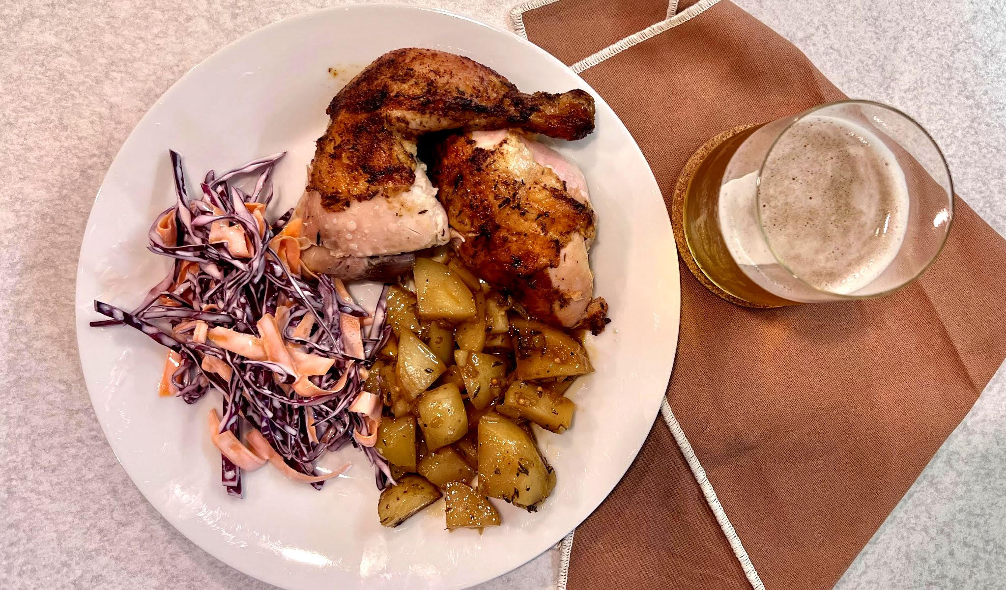 This is a recipe that works whether you’re squeezing in one last summer cookout or leaning into cozy fall dinners. Crack open a Jasper the Bear, pour yourself half, and let the other half do its work inside the bird. Serve with roasted potatoes, French fries, a simple green salad, bean and corn salad, or your favourite side.